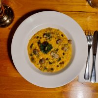Paccheri auf Pecorino Käse Fonduta, Bärlauchpesto und gebratenen Kräuterseitlingen
