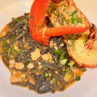 Schwarze Tagliolini mit 1/2 Hummer a,b,d,6